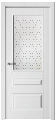 Дверь Классика-3 ширина 90 см Белый Эмаль Стекло мателюкс "Лорд матовое" кромка В цвет полотна в Бердске